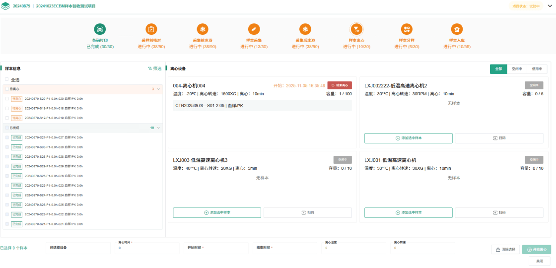 系统自动记录离心机运行参数,实时监控样本离心状态,大幅提升离心效率,确保样本处理质量一致。
